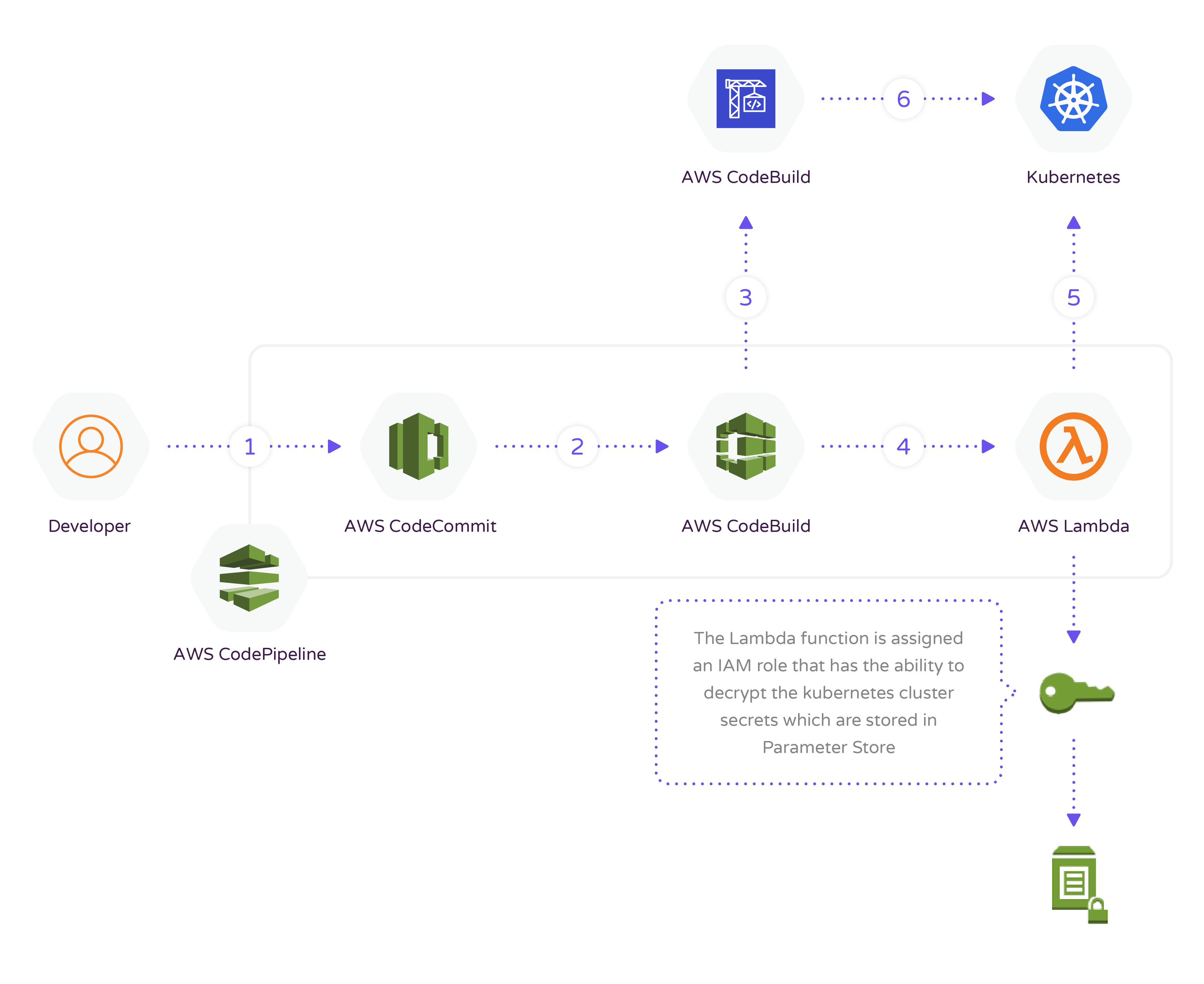 Practicamos la entrega continua mediante AWS CodePipeline, lo que te permite armar un flujo de trabajo que crea código en AWS CodeBuild, ejecuta pruebas automatizadas e implementa código.