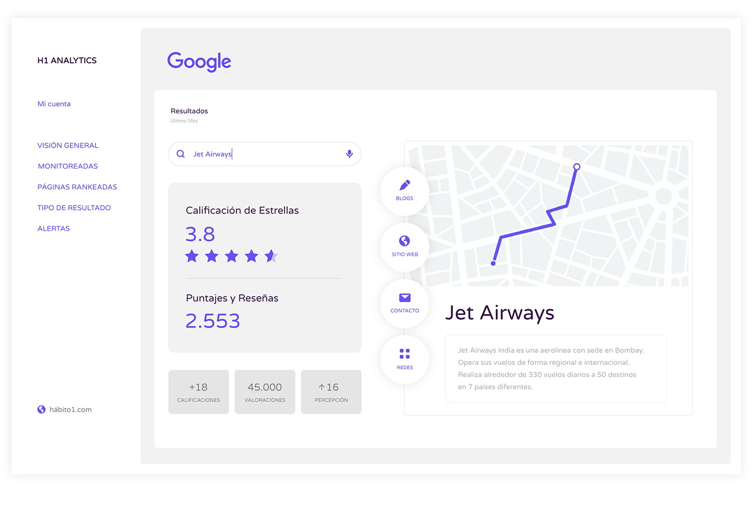 Google muestra una lista de diferentes compañías que no poseen websites locales. Con nuestros servicios de SEO puedes rastrear las posiciones de esas empresas en los resultados de búsqueda.